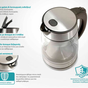 βραστήρας νερού 1.7L, 2200W, γυάλινος-Inox
