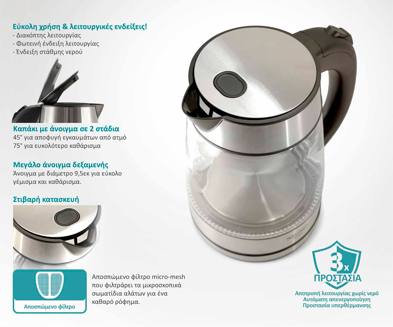 Χρόνος βρασμού: Γρήγορο βράσιμο (6 λεπτά για 1,7 λίτρα / 3 λεπτά για 1 λίτρο)