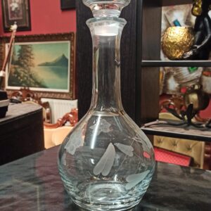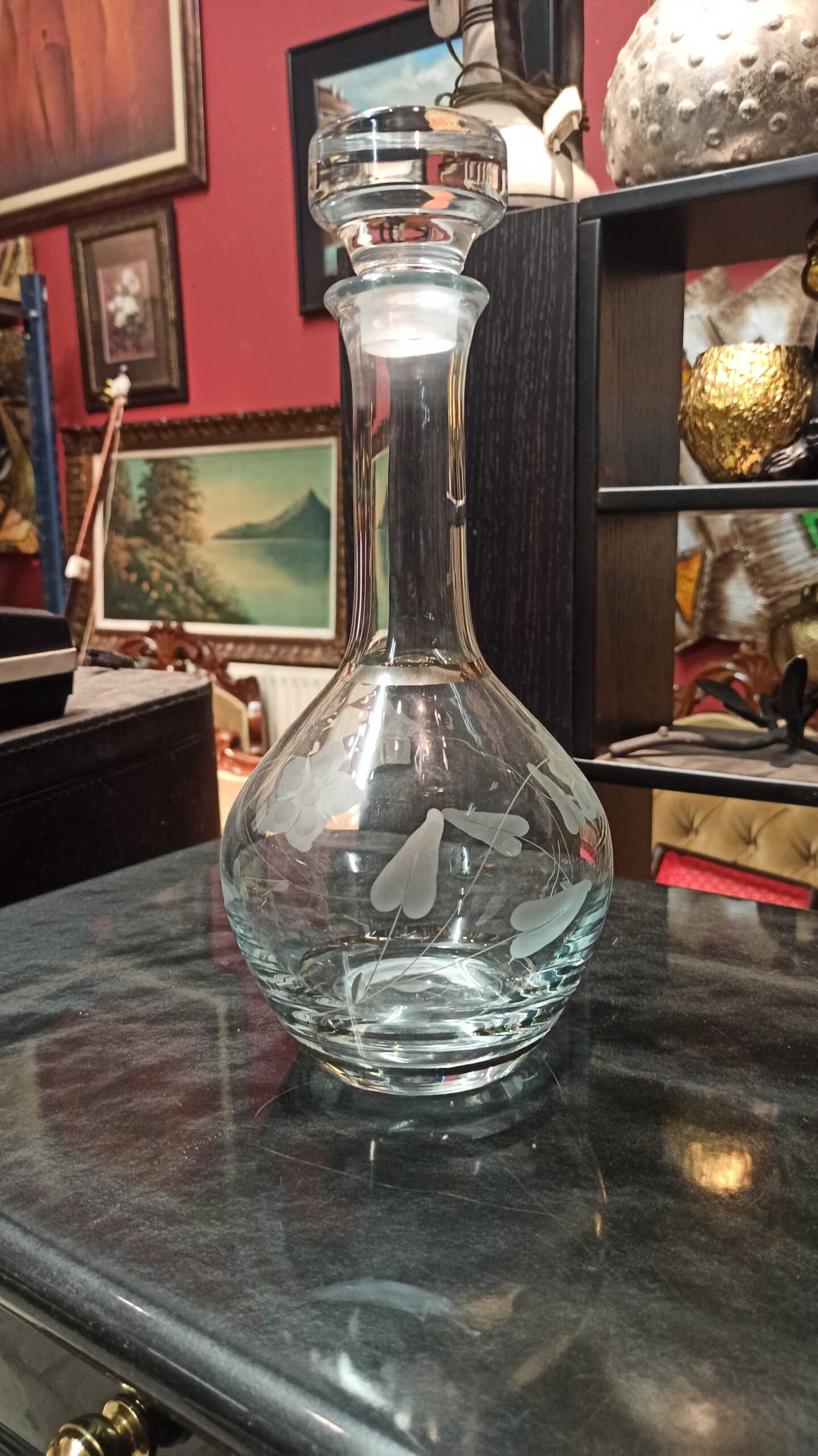 Πωλείται διακοσμητικό γυάλινη καράφα με λευκά λουλούδια. Τα λουλούδια είναι όμορφα και περίτεχνα, και αποτελούνται από λευκά τριαντάφυλλα