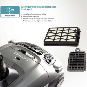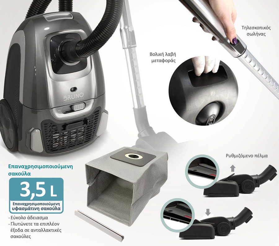Μέσο συλλογής σκόνης: υφασμάτινη σακούλα (επαναχρησιμοποιούμενη)