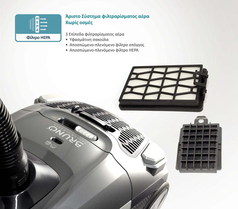 Φίλτρο εξαγωγής αέρα: ναι (αποσπώμενο-πλενόμενο φίλτρο HEPA)