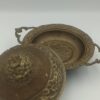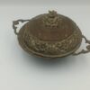 Πωλείται εξαιρετικής αισθητικής vintage μεταλλικό σκεύος με περίτεχνα ανάγλυφα floral σχέδια. Διαθέτει καπάκι με κεντρικό διακοσμητικό μοτίβο λουλουδιών και δύο κομψές πλαϊνές λαβές.
