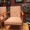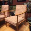 2 Σουιδικές ξύλινες πολυθρόνες με μπράτσα σε πάρα πολύ καλή κατάσταση ο σκελετός της πολυθρόνας και το ύφασμα,