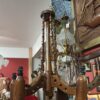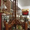 Ανακαλύψτε ένα σπάνιο κομμάτι διακόσμησης που συνδυάζει την παραδοσιακή ξυλουργική τέχνη με την αισθητική των περασμένων δεκαετιών. Αυτός ο χειροποίητος πολυέλαιος είναι κατασκευασμένος από μασίφ ξύλο σε ζεστή καφέ απόχρωση, προσφέροντας μια αίσθηση θαλπωρής σε κάθε χώρο.