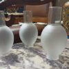 Υλικό: Ημιδιαφανές “παγωμένο” γυαλί (frosted glass) στο σώμα για ομοιόμορφη διάχυση του φωτός και διάφανη κυλινδρική καμινάδα στο επάνω μέρος.