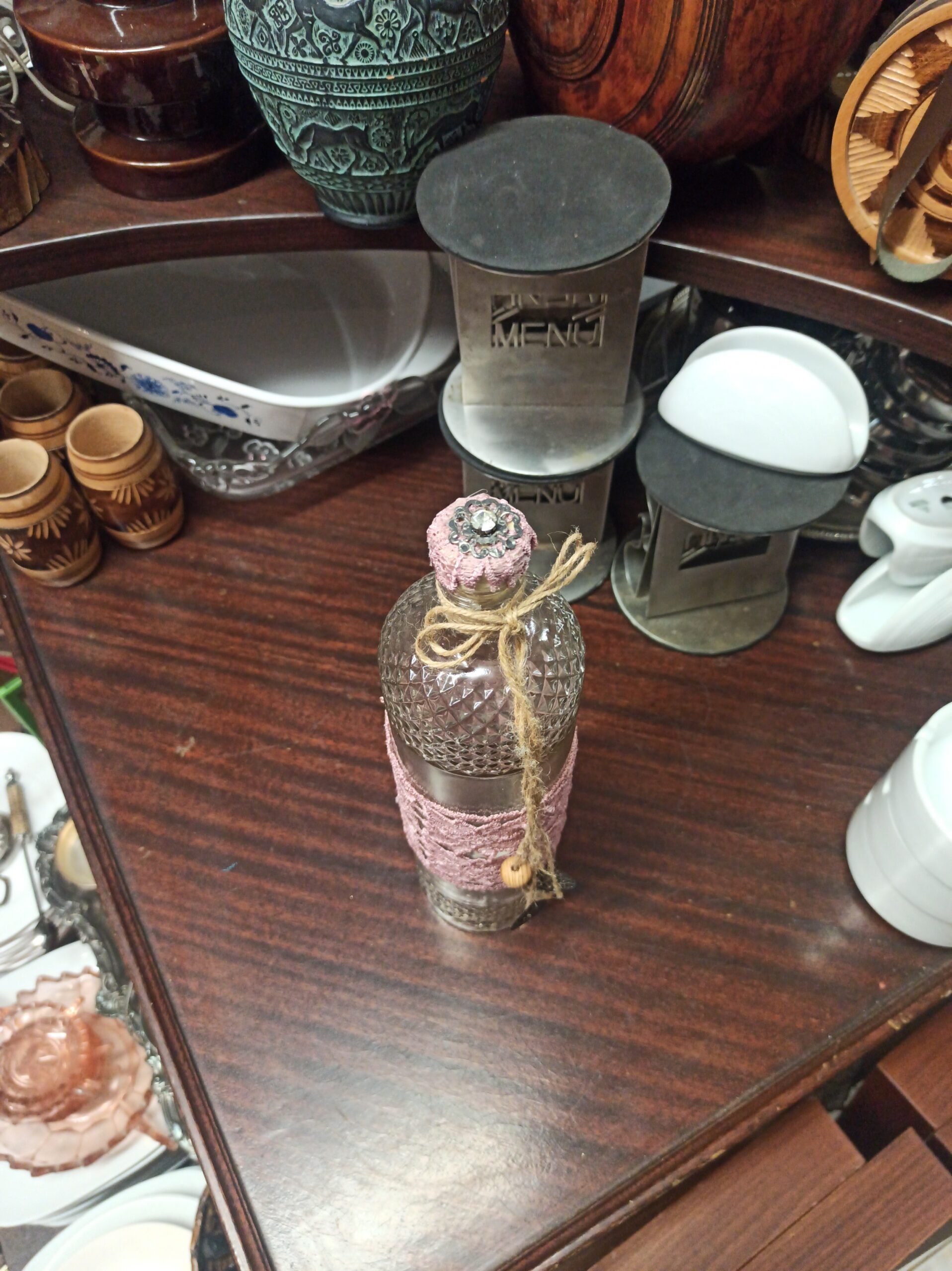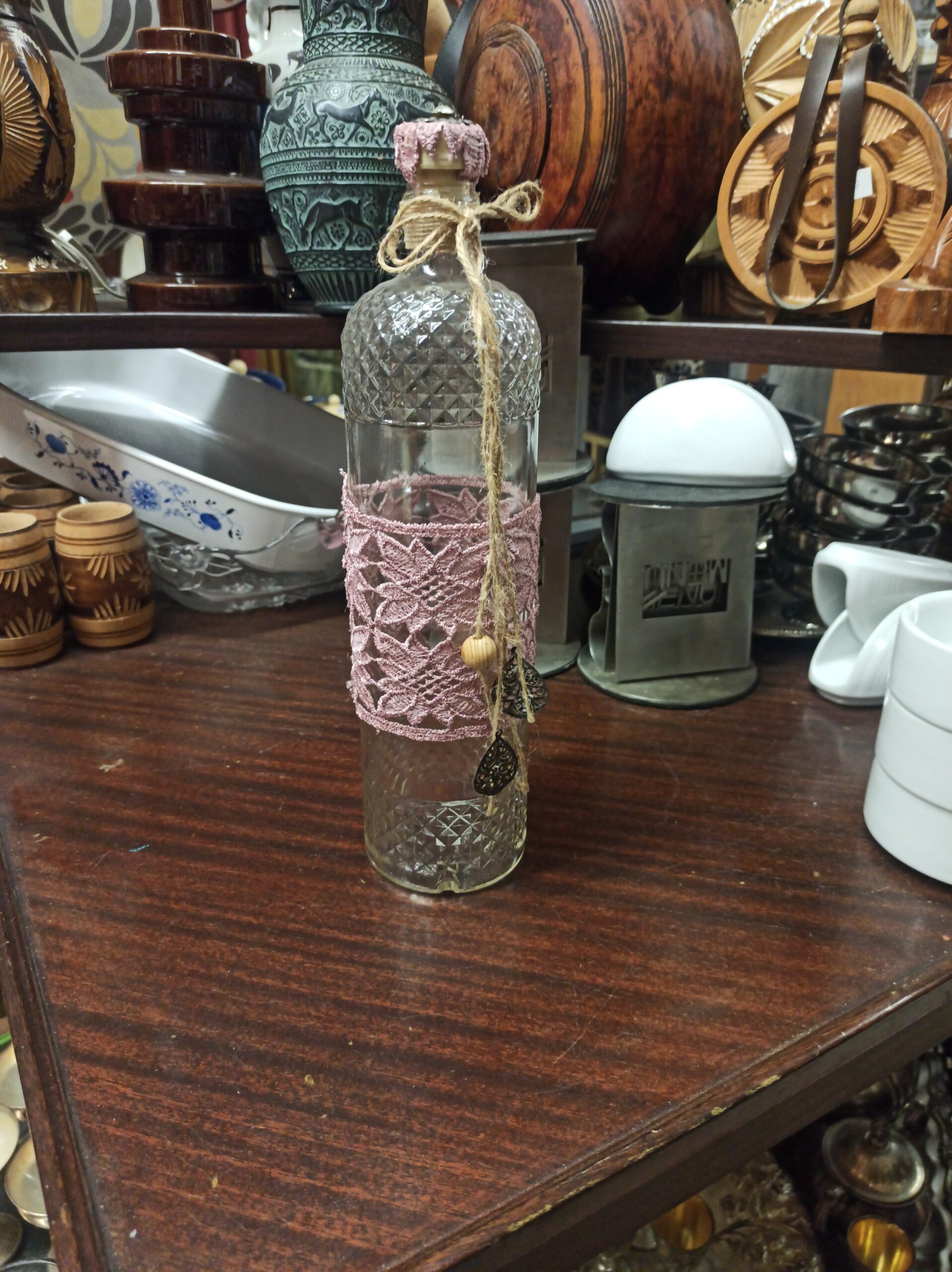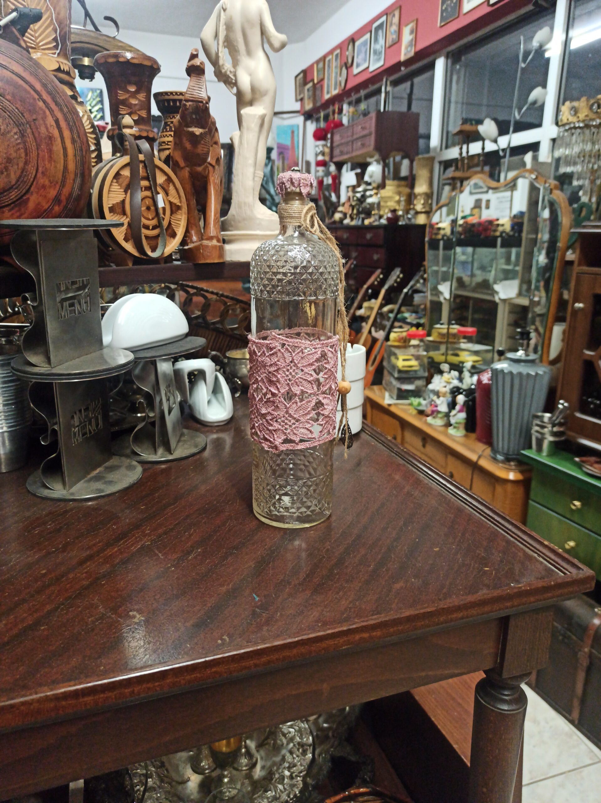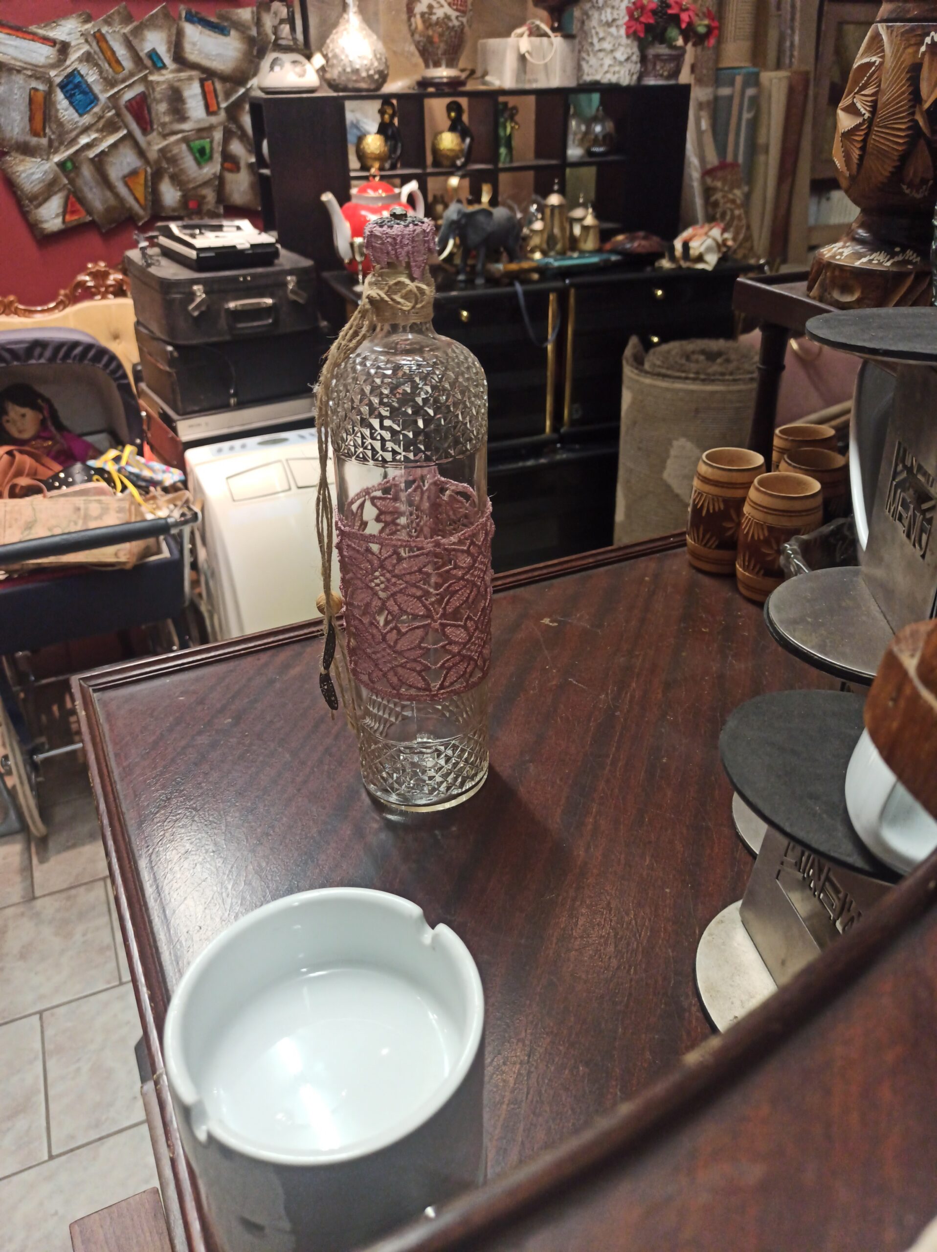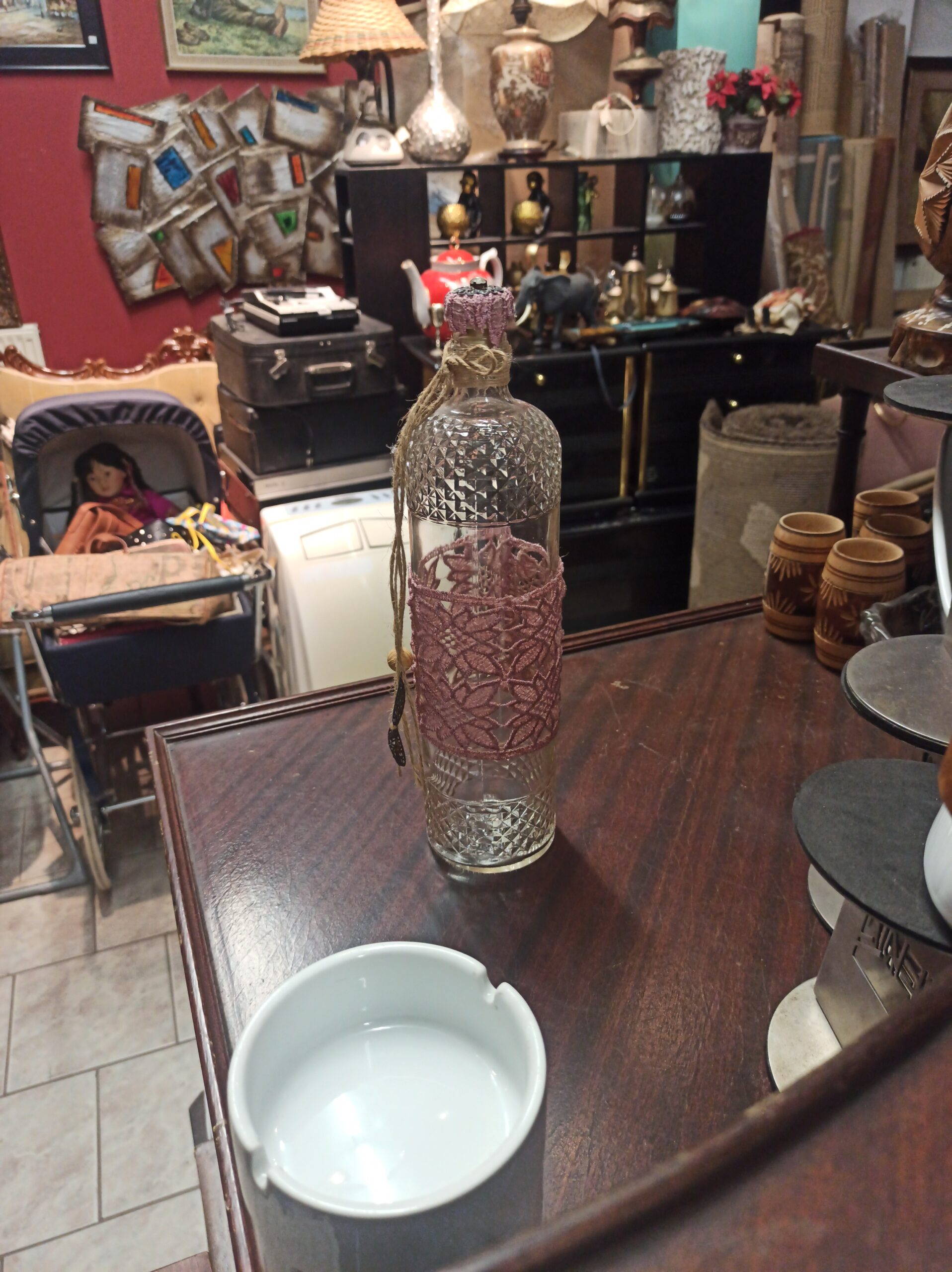 Πωλείται γυάλινο μπουκάλι . Το μπουκάλι είναι σε άριστη κατάσταση και δεν έχει υποστεί ζημιές. Είναι κατασκευασμένο από υψηλής ποιότητας γυαλί και έχει διαστάσεις. Το σχέδιο είναι μοναδικό και εντυπωσιακό, και θα προσθέσει μια πινελιά κομψότητας σε κάθε χώρο.