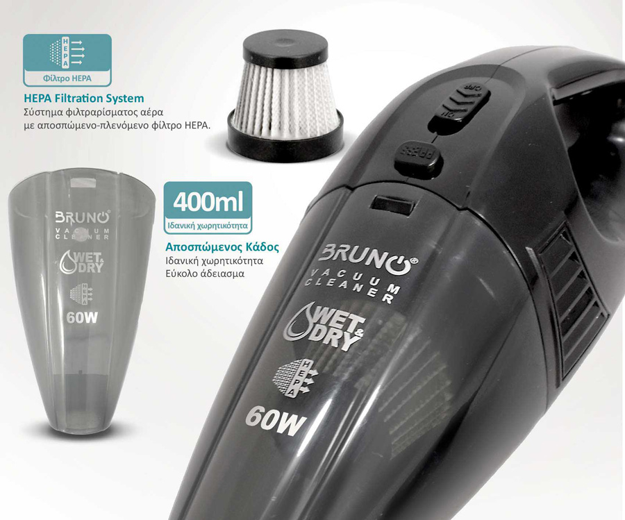 Διαθέτει επίσης κάδο με ιδανική χωρητικότητα 400ml που αφαιρείται και αδειάζει εύκολα, καθώς και αποσπώμενο-πλενόμενο φίλτρο HEPA.