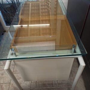 Μετάβαση στο περιεχόμενοΕξοπλισμός καταστήματος σταντ για ρούχα με δύο συρόμενα συρτάρια και σιδερένιο σκελετό, σε άριστη κατάσταση