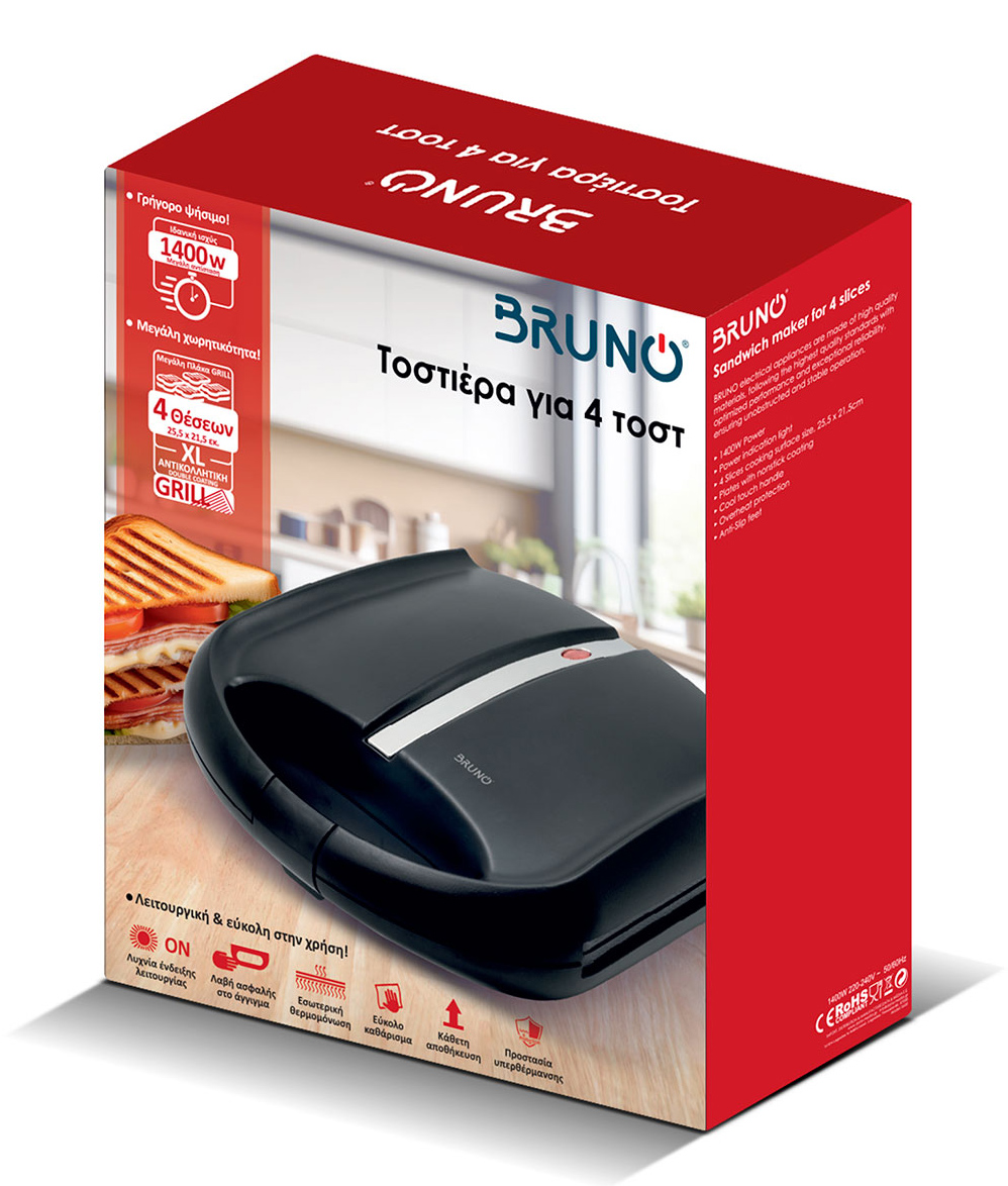 -Διαστάσεις επιφάνειας ψησίματος: 25,5 x 21,5 εκ. (4 Θέσεων)