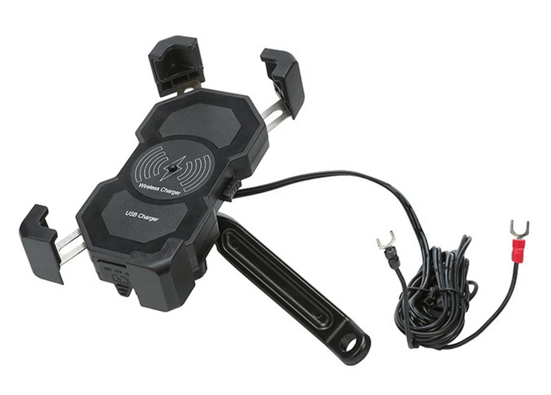 Ασύρματος φορτιστής και βάση smartphone της Powertech με στήριξη στο τιμόνι της μοτοσυκλέτας.