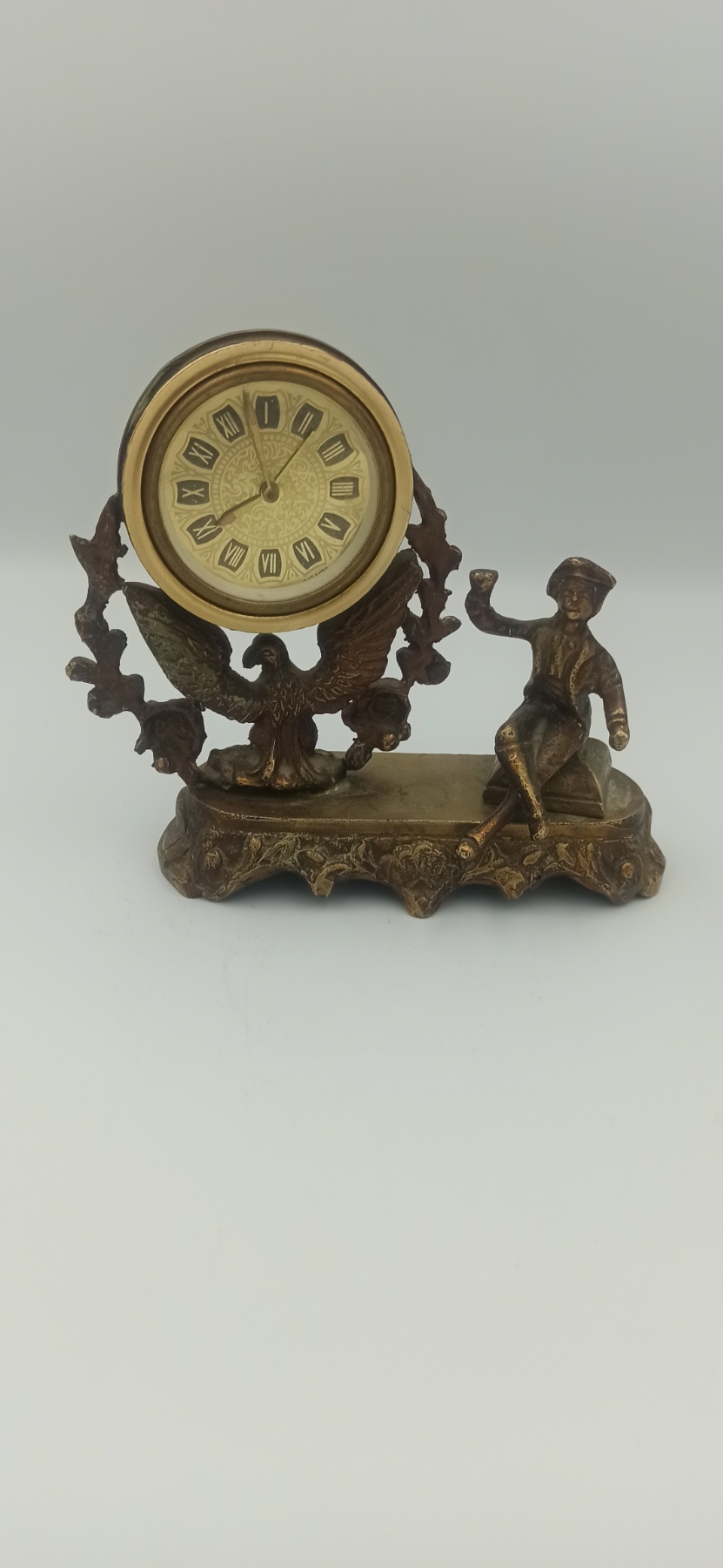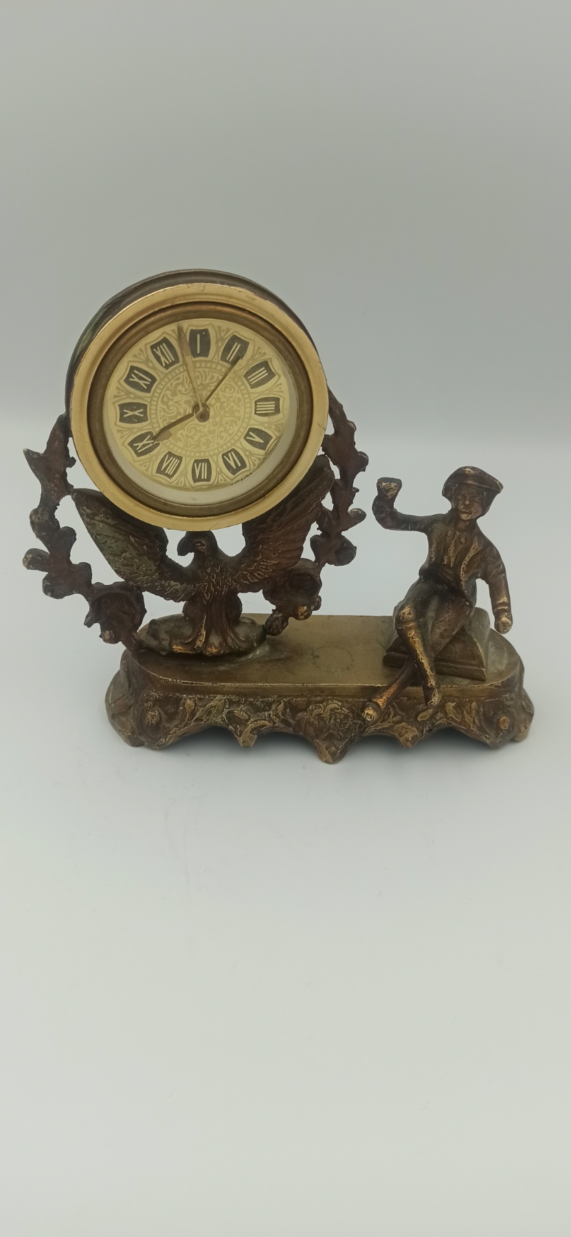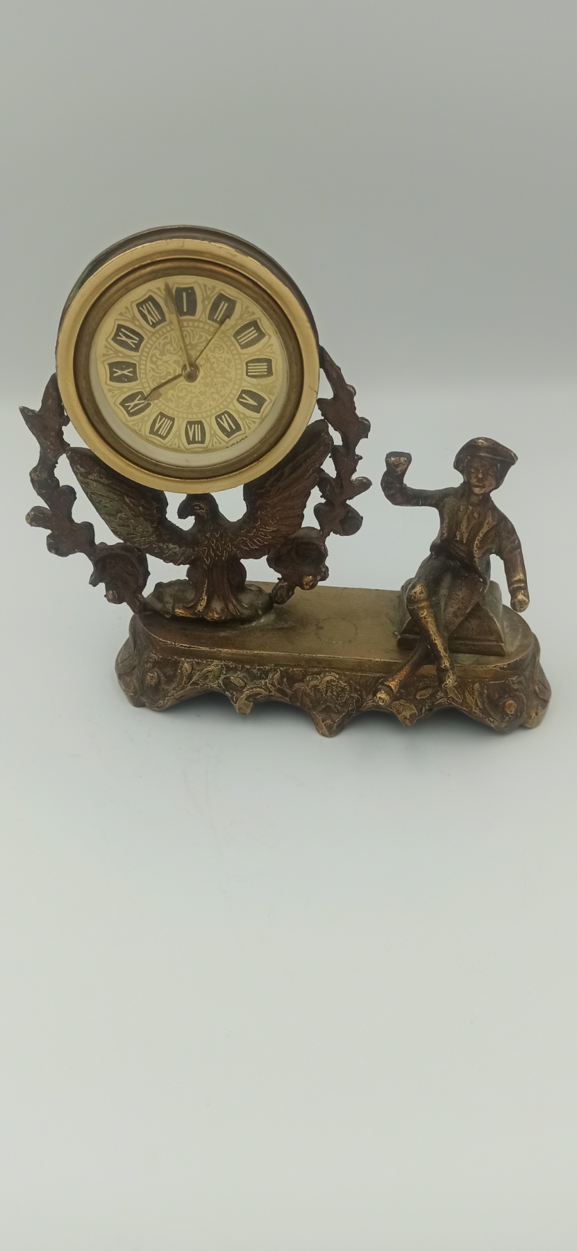 Εμπλουτίστε τη διακόσμηση του γραφείου ή του σαλονιού σας με αυτό το εντυπωσιακό επιτραπέζιο ρολόι. Κατασκευασμένο από ανθεκτικό χυτό μέταλλο με φινίρισμα παλαιωμένου μπρούτζου, το ρολόι αποτελεί ένα μικρό έργο γλυπτικής τέχνης που συνδυάζει τη λειτουργικότητα με την αισθητική μιας άλλης εποχής.
